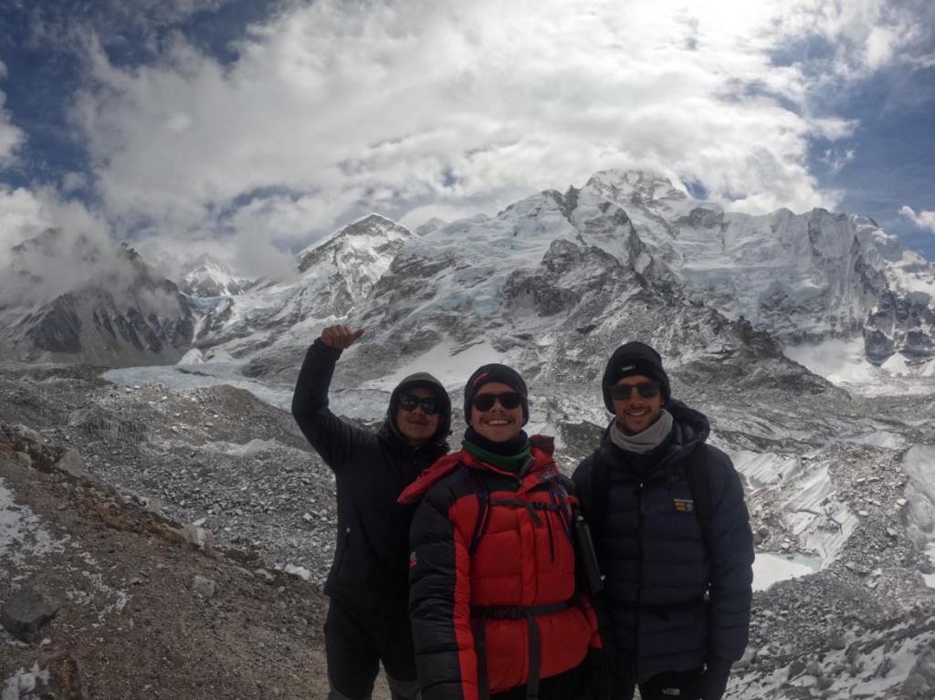 The trek up would last for 4-5 hours, with a quick stop at Garapshe to refuel. We were making good time and an early start meant we were on track to get to base camp before midday, a definite win with the weather around. Luckily, mother nature decided to bless us and when we were 30 minutes from base camp, the skies began to clear. Once again, no words do this moment any justice. We had a complete view of the Khumbu icefall, Pumori and could see Everest’s glorious summit. There were a few tents pitched at base camp, getting ready for their 6–8-week expedition to summit Everest, but other than this, it was freakishly earie. When we had stopped for a quick rest, we heard a deep and distant rumble that immediately silenced everyone. Pat and I anxiously looked at Laxman, to which he calmly replied; ‘Avalanche’, as if it were an everyday occurrence. This served as a reminder as to just how remote we were and that we were at the complete mercy of mother nature.